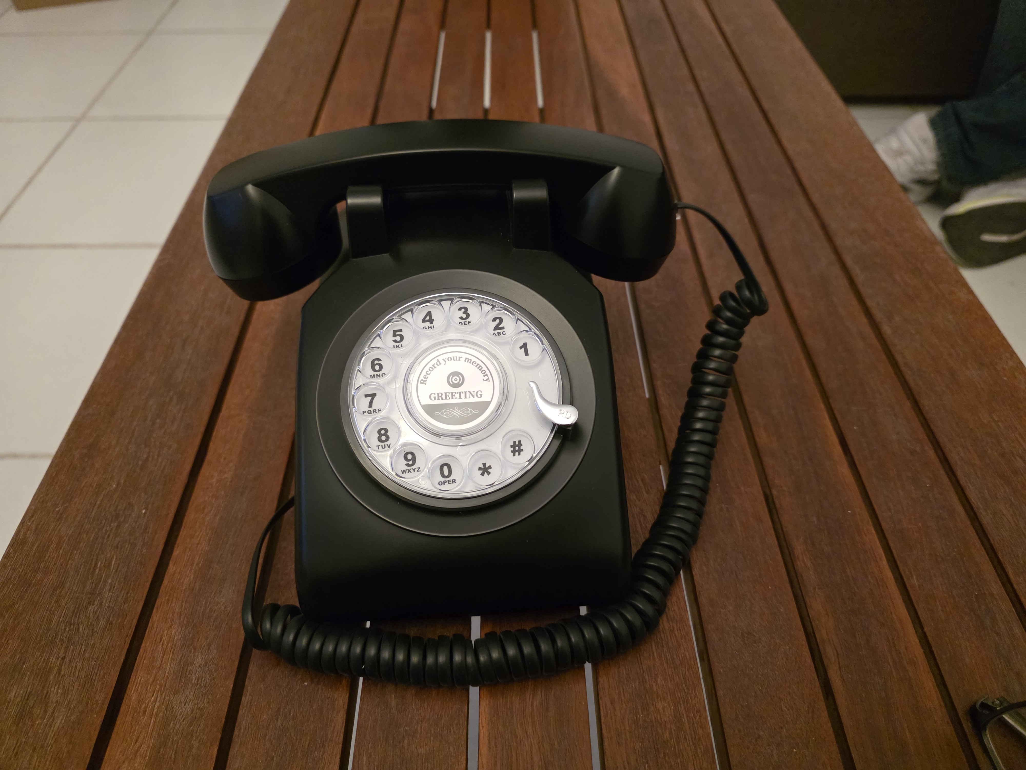 Ένα κομψό ρετρό τηλέφωνο που καταγράφει σε ηχητική μορφή τις ευχές των καλεσμένων, αντικαθιστώντας τα παραδοσιακά γραπτά μηνύματα.